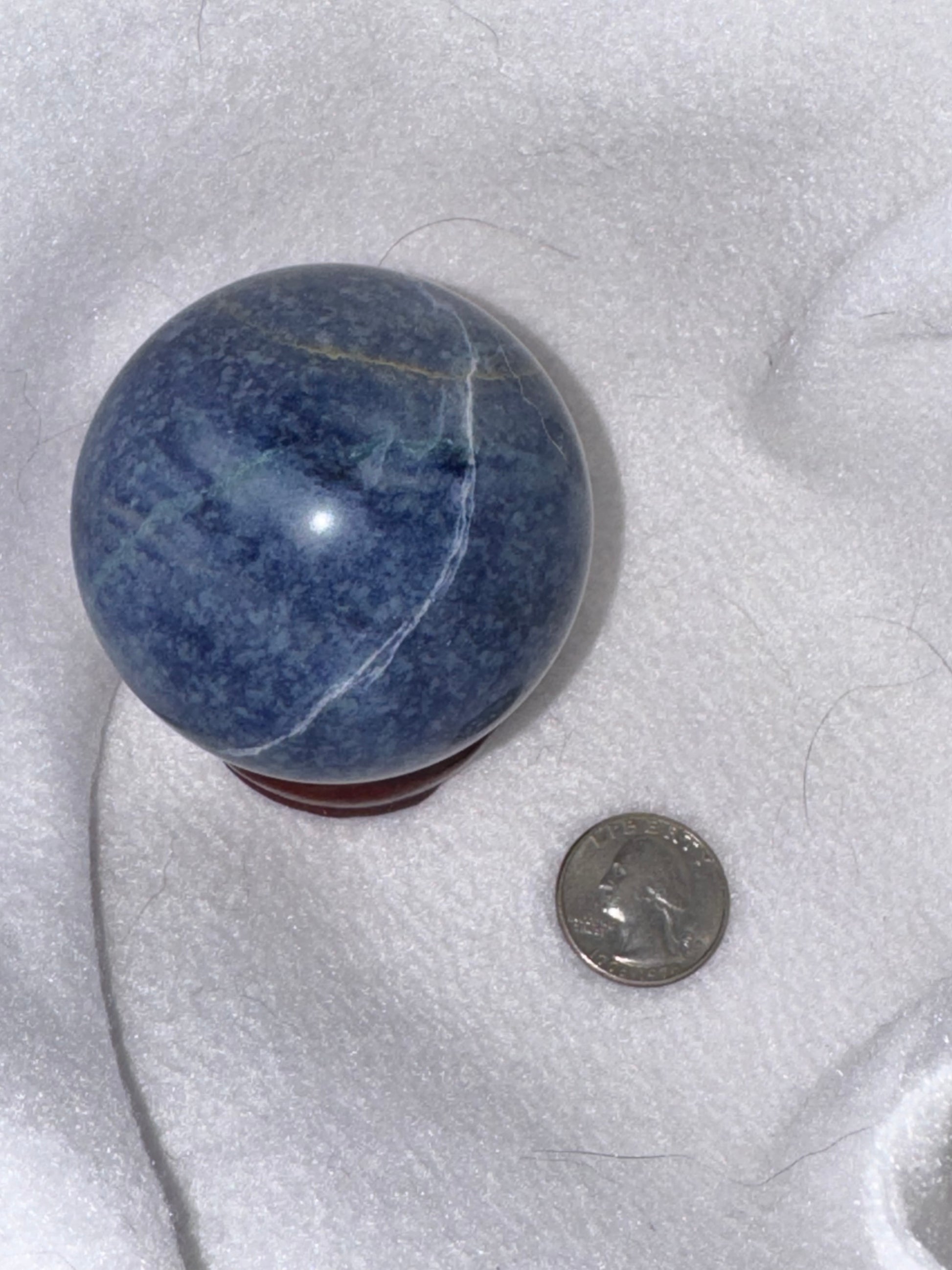 Immerse yourself in the tranquil energy of our Sodalite Sphere, a symbol of clarity, self-expression, and spiritual insight. Known for its rich blue tones with white veining, sodalite is perfect for enhancing intuition, promoting clear communication, and fostering emotional balance.