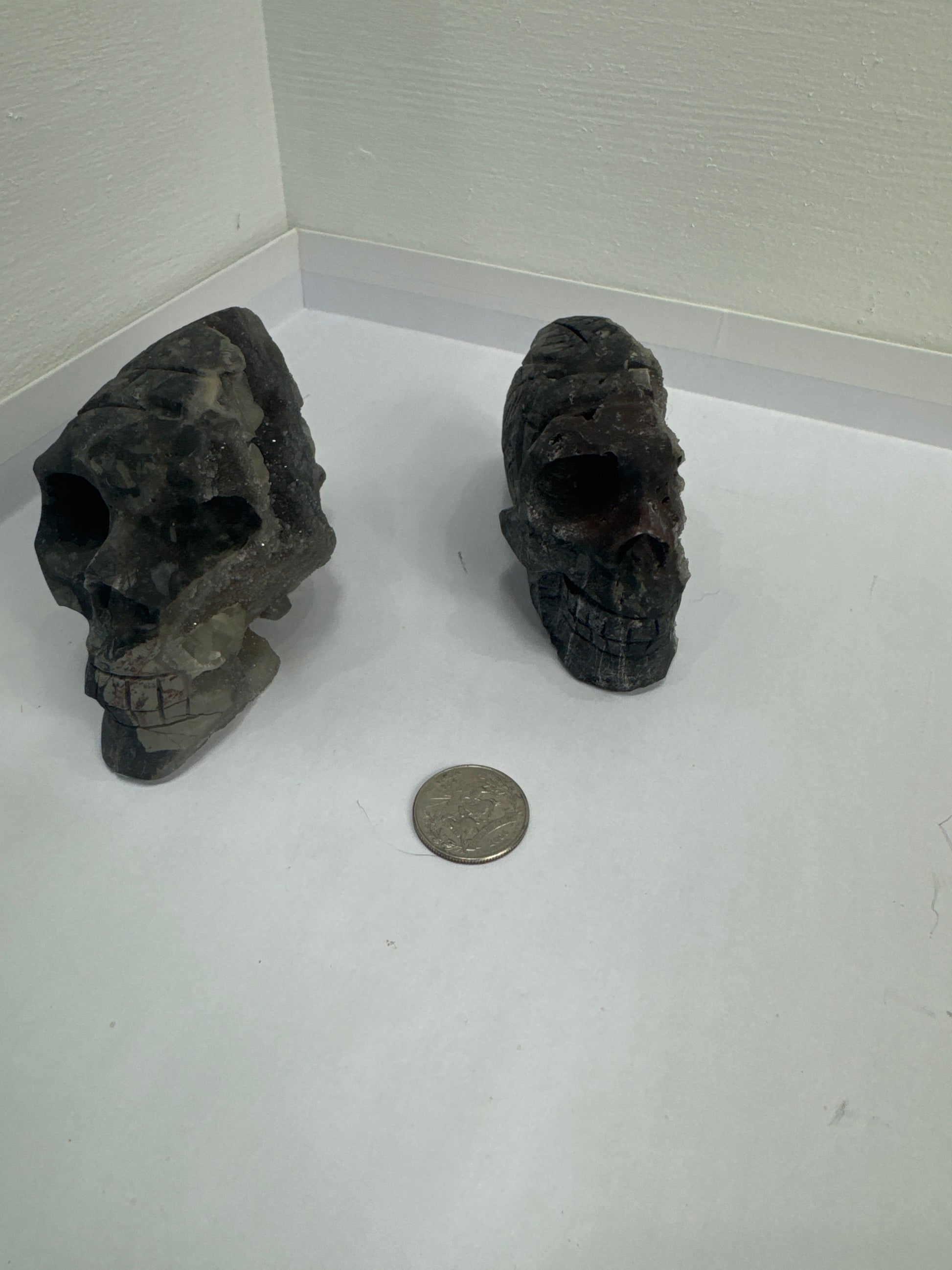 Each Sphalerite Skull showcases dark, metallic tones with unique mineral inclusions, creating a dynamic visual effect that reflects the stone’s grounding power. The intricate carving highlights the symbolic strength of the skull, making it both an energetic tool and a stunning decorative piece.