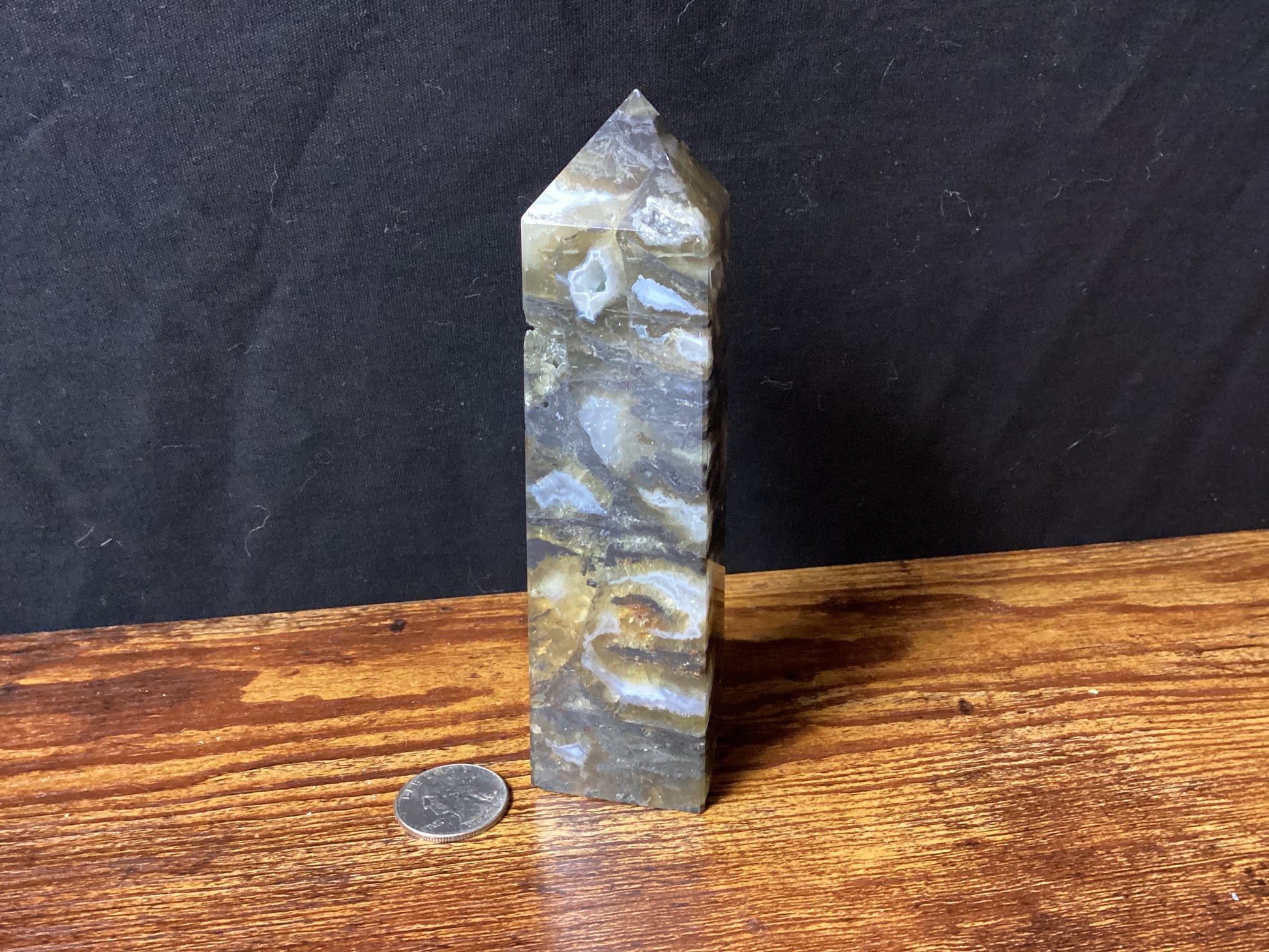 Each Sphalerite Tower features a unique combination of metallic and earthy hues, with reflective surfaces that capture the light. Its pointed design channels energy upward, focusing and amplifying its transformative power.