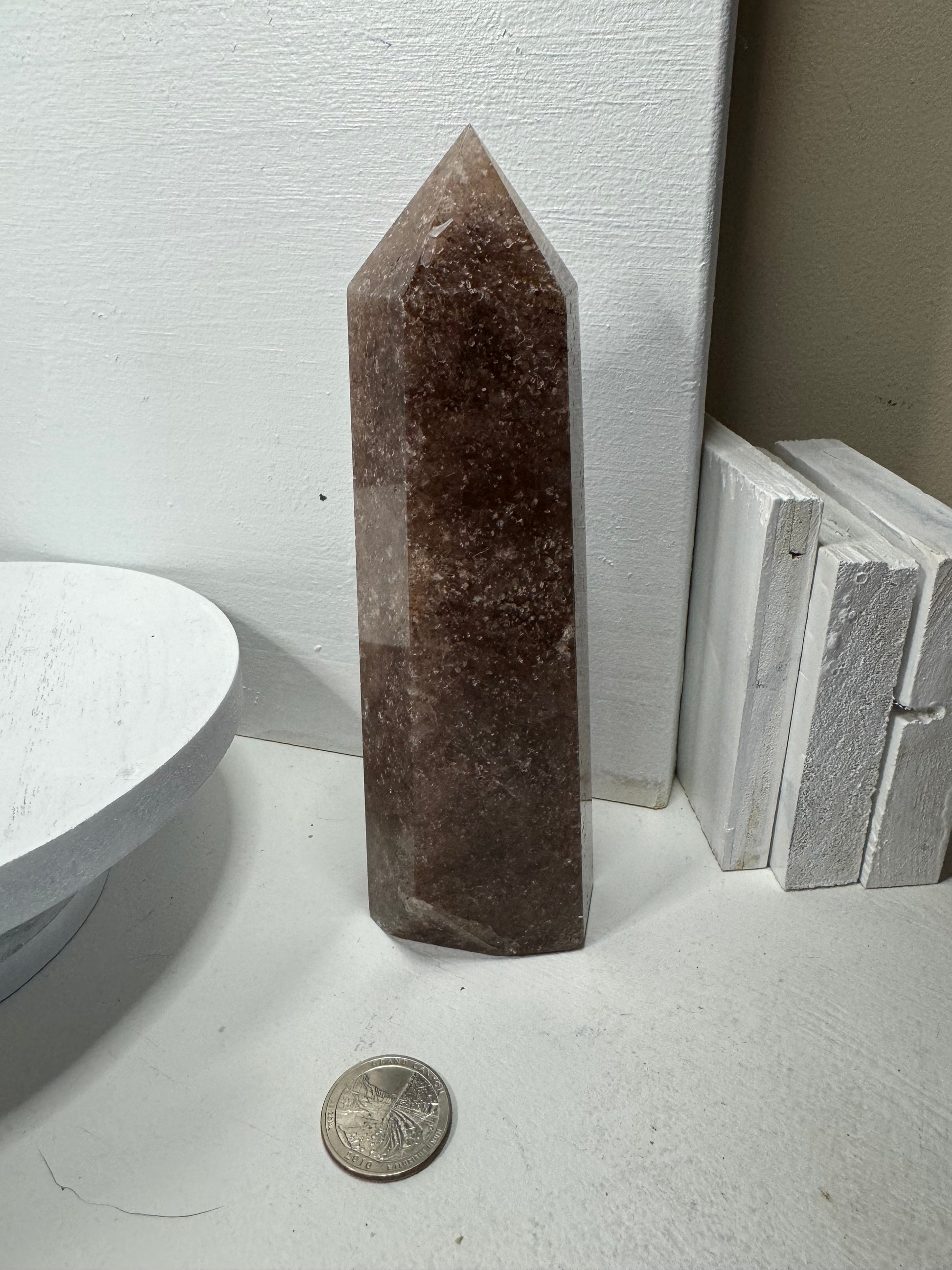 Elevate your spiritual journey with our Strawberry Quartz Tower, a mesmerizing gemstone infused with the loving energies of the heart and the transformative power of spiritual growth. Each tower radiates the gentle vibrations of unconditional love, harmony, and inner wisdom, inviting you to embark on a path of self-discovery and personal transformation.