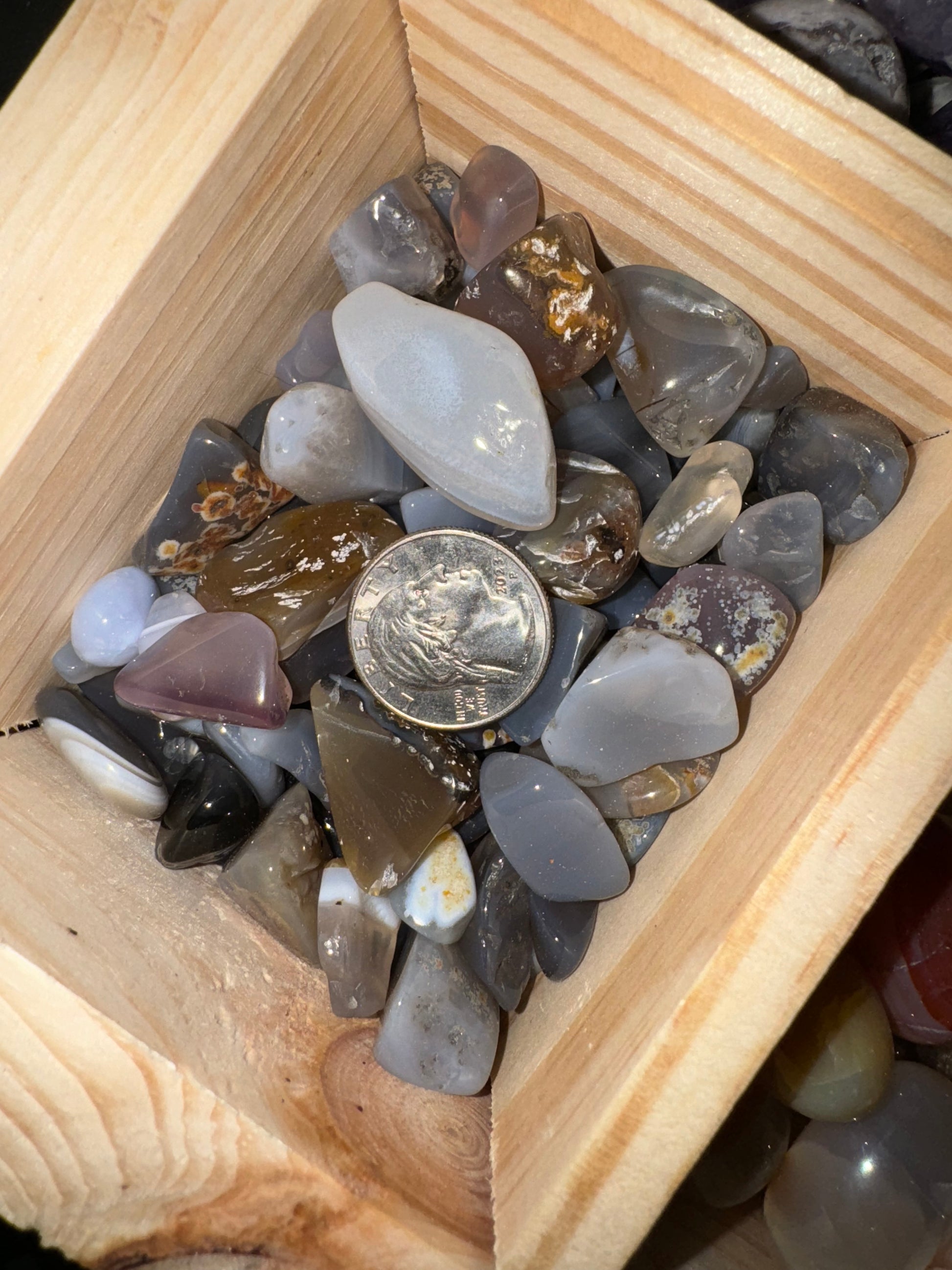 Gift yourself or a loved one the grounding energy of our Banded Agate Tumbles, Chumbles, or Chips. Each set is thoughtfully packaged, making it a meaningful and versatile gift for any occasion.