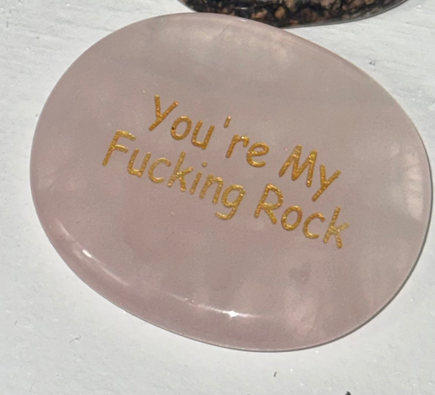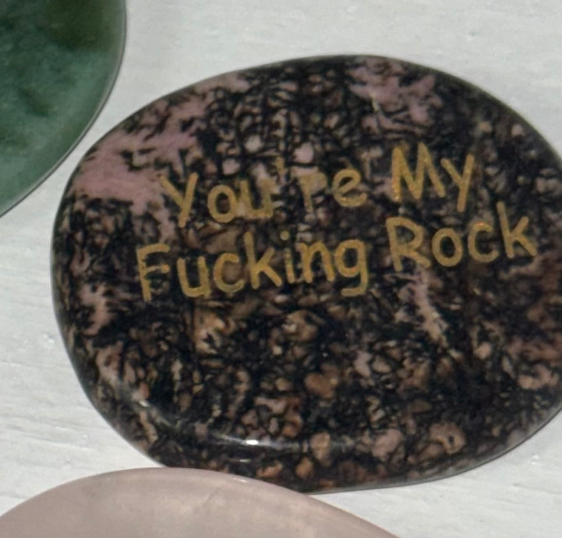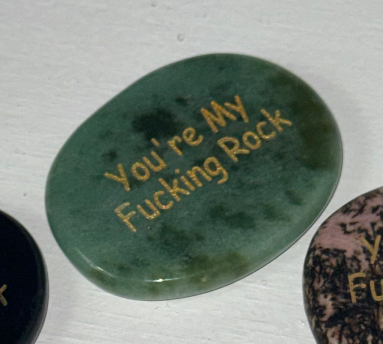 Each “You Are My F%King Rock”* Worry Stone is unique due to the natural variations of the gemstone, ensuring every piece is truly one of a kind.
