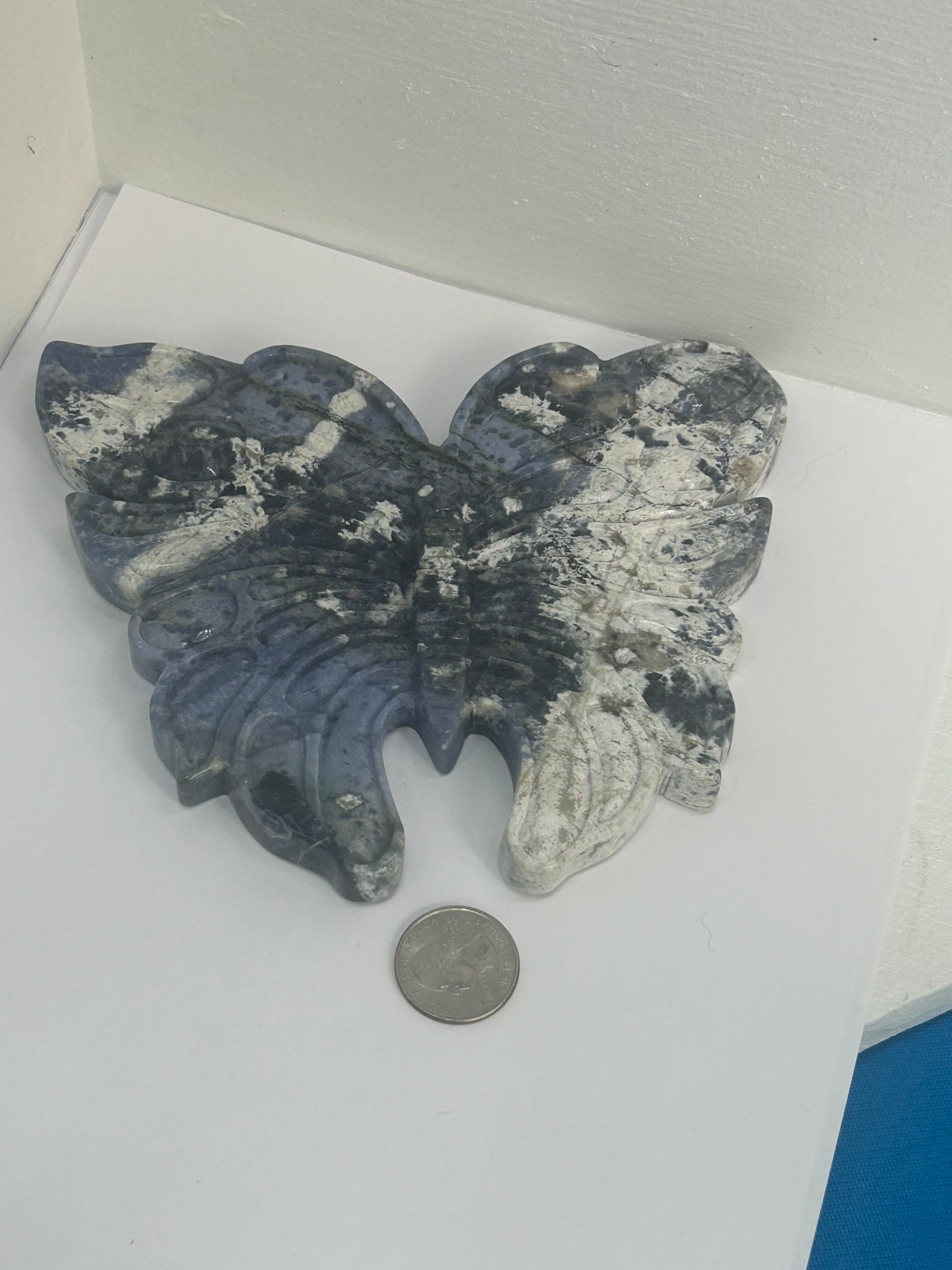 Embrace the soothing and transformative energy of our Blueberry Jasper Butterfly, a beautiful symbol of growth, freedom, and emotional balance. With its captivating blue tones and graceful butterfly design, this piece combines the calming energy of jasper with the uplifting spirit of transformation.