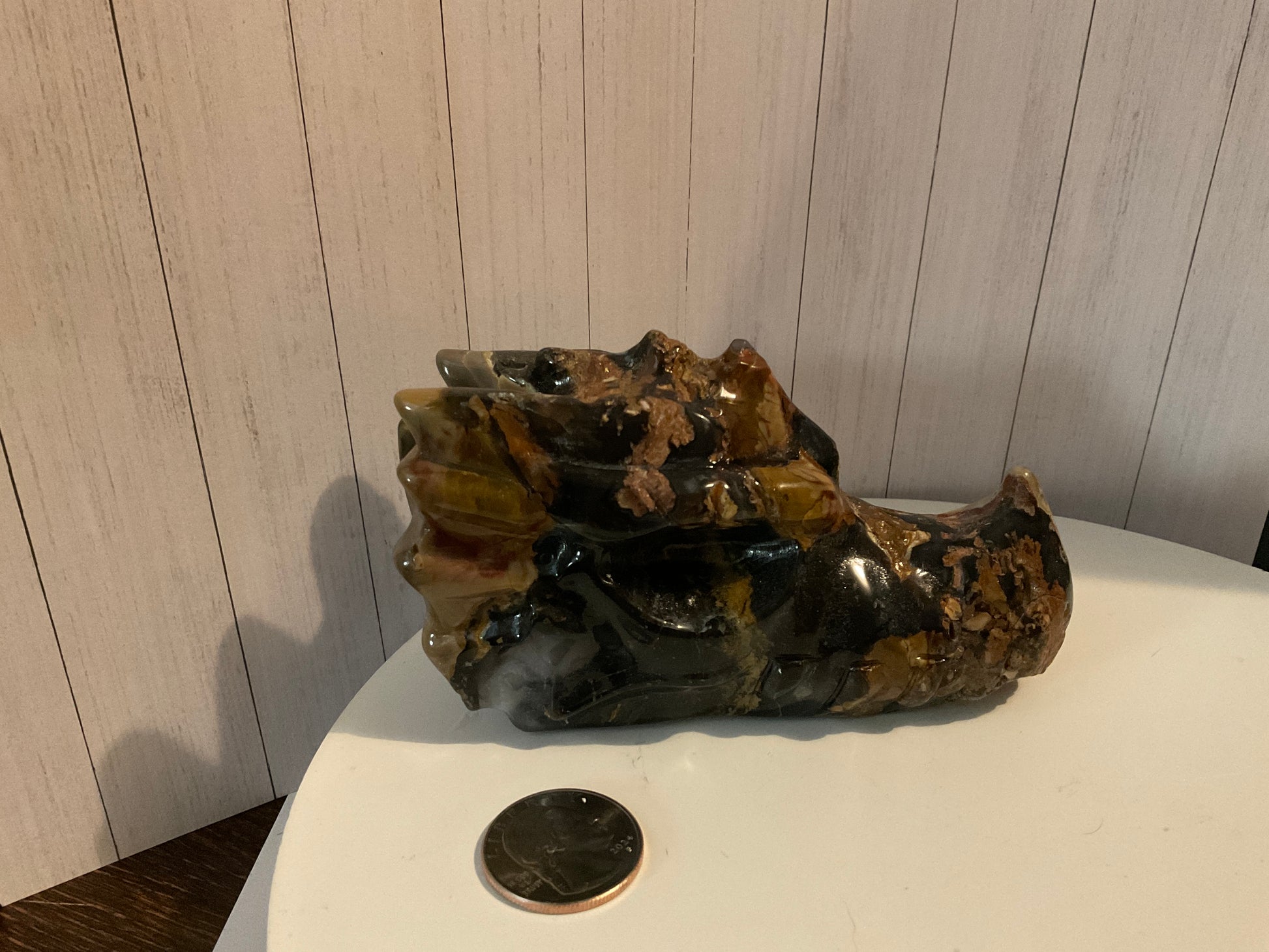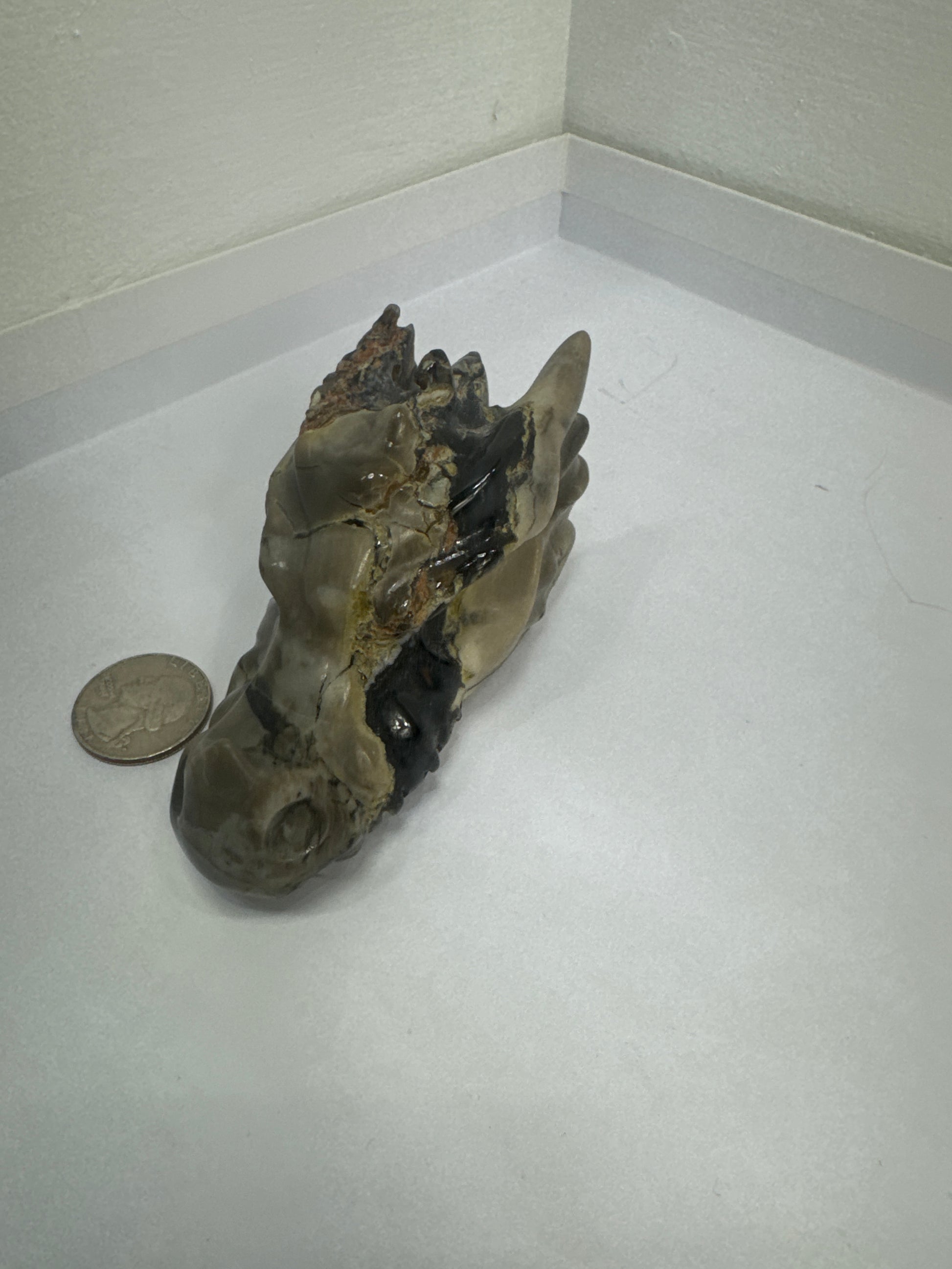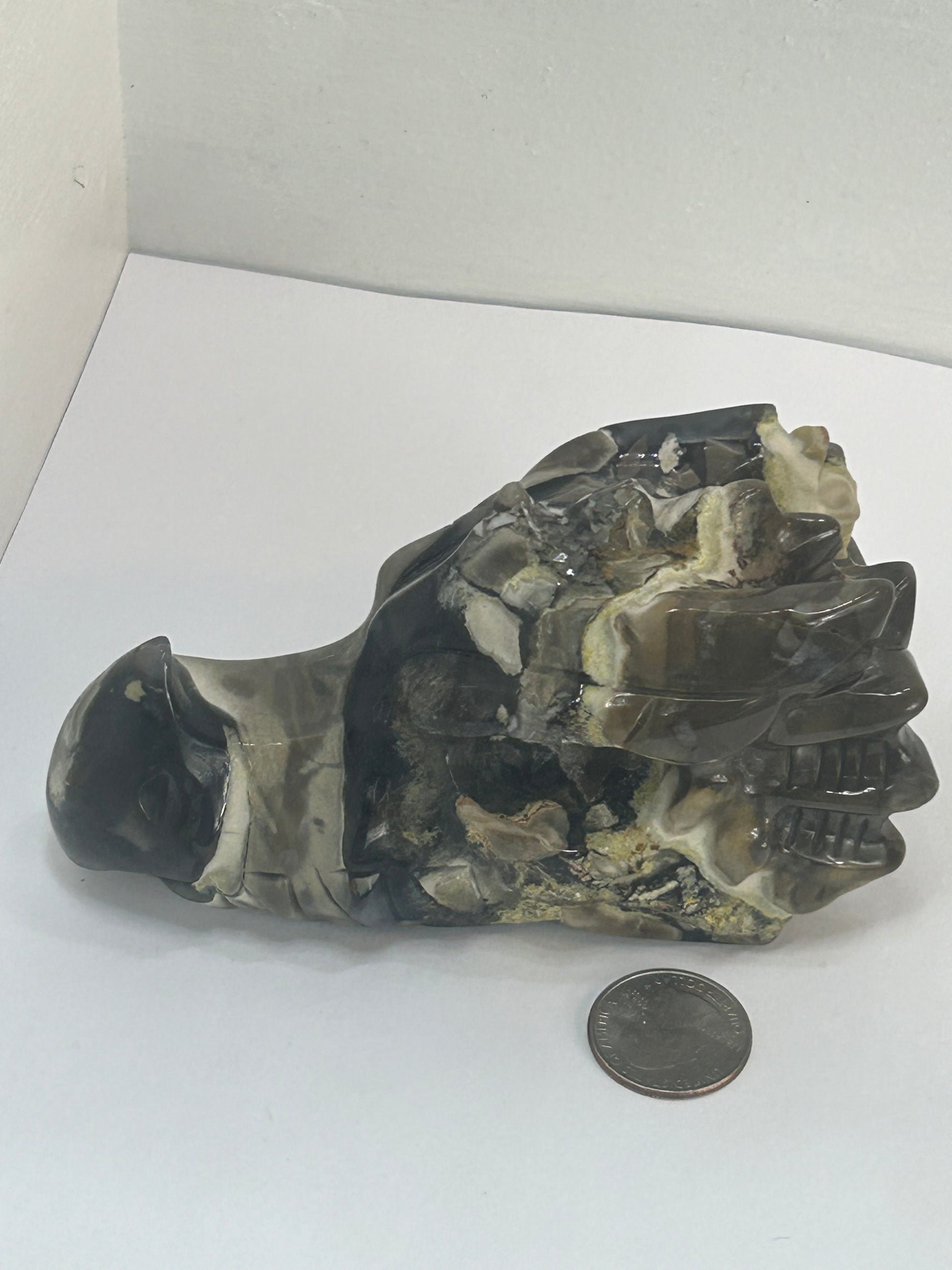 VOLCANO AGATE DRAGON SKULL-Strength, Grounding, Transformation, and UV reactive