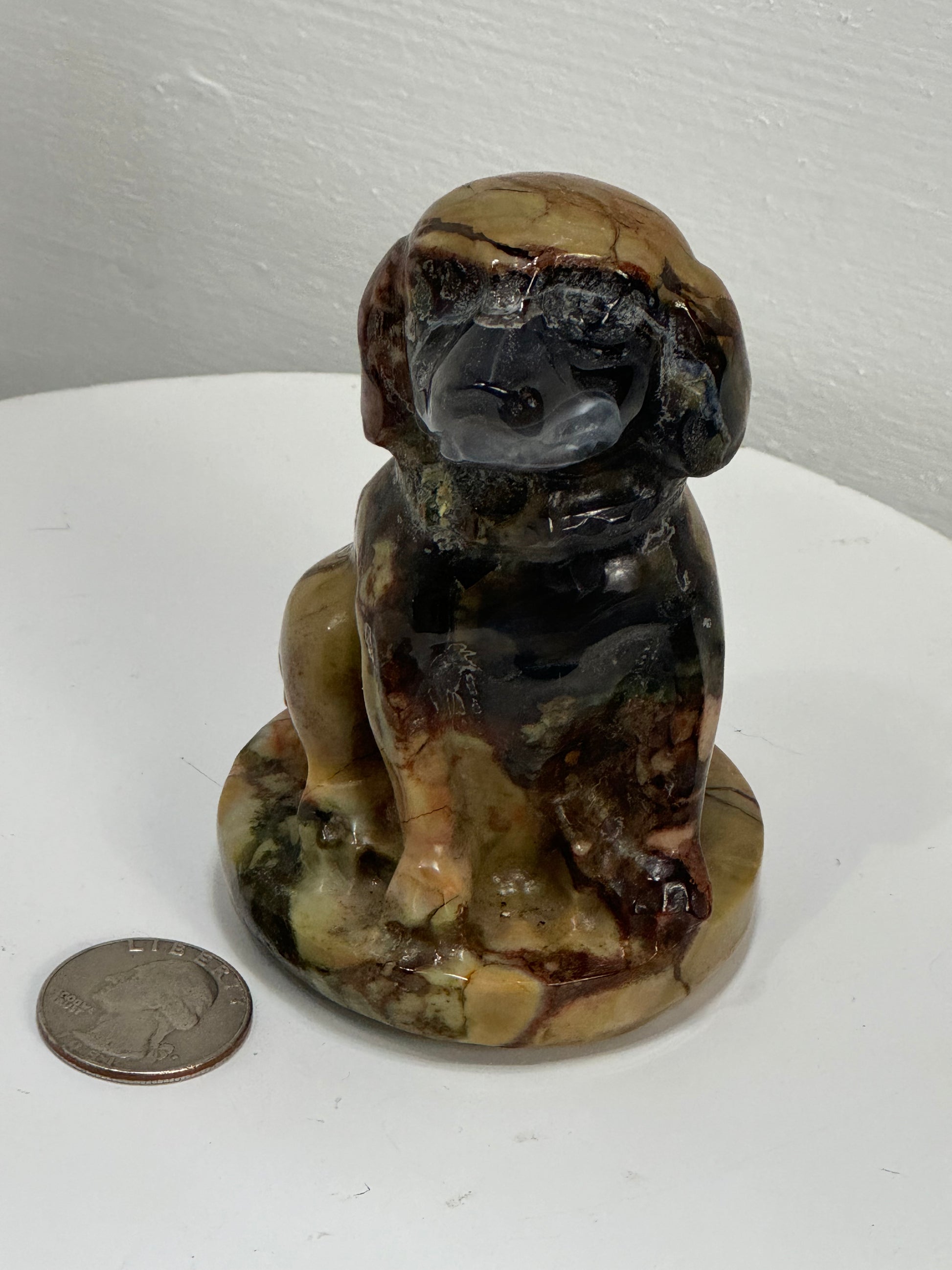 Each Volcano Agate Dog carving is unique in color and pattern due to natural gemstone variations, ensuring every piece is truly one of a kind.