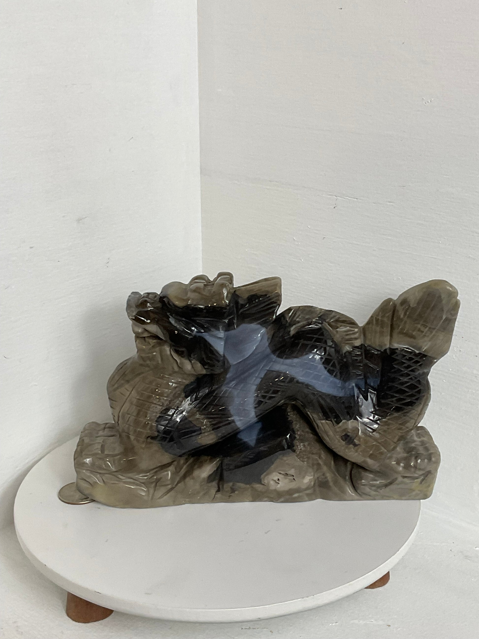 Place this Volcano Agate Chinese Dragon Carving on your desk, altar, or shelf to bring transformative energy, protection, and wisdom into your space. Its bold design adds a touch of mystical elegance to any environment, serving as a constant source of inspiration.