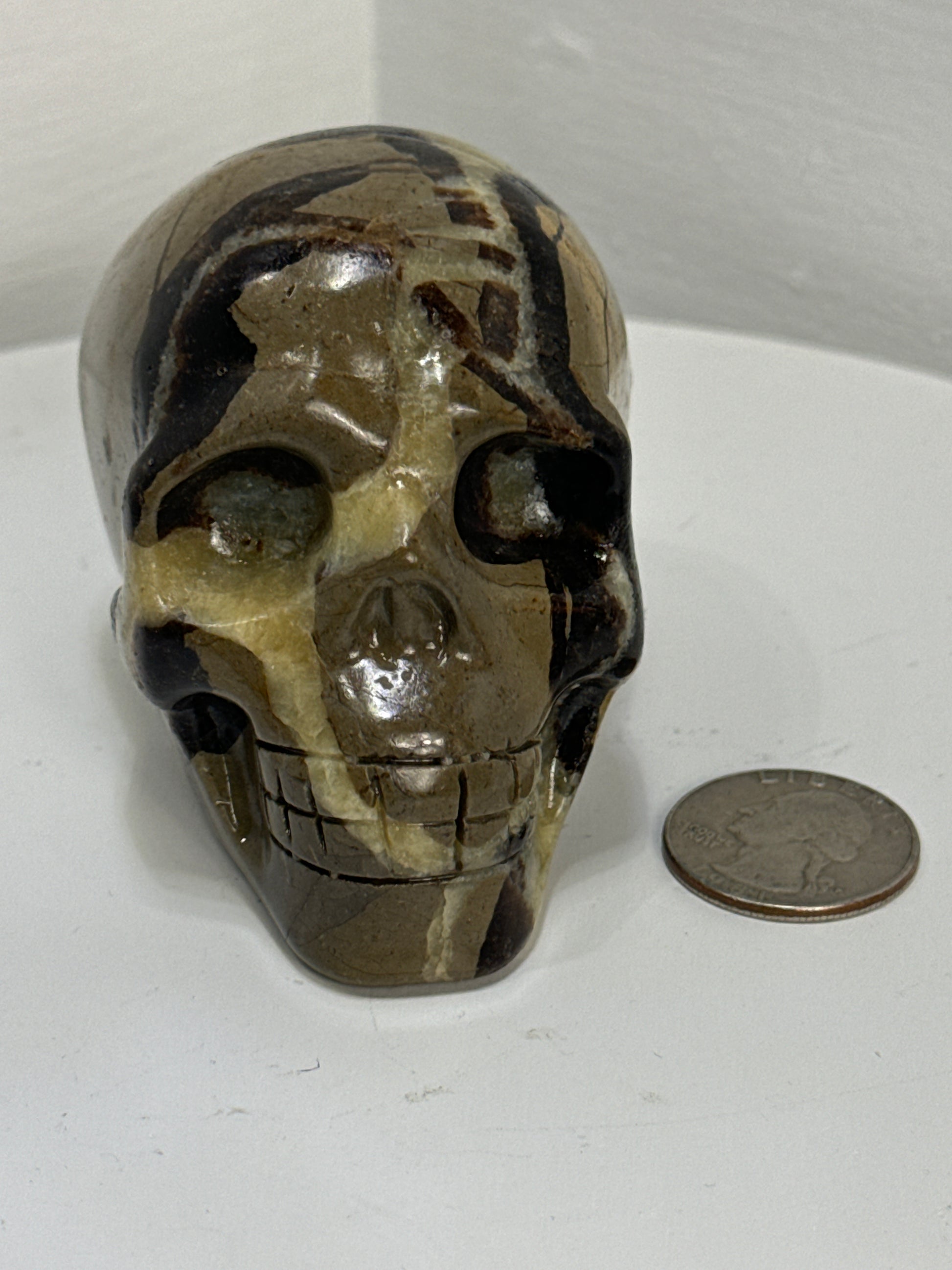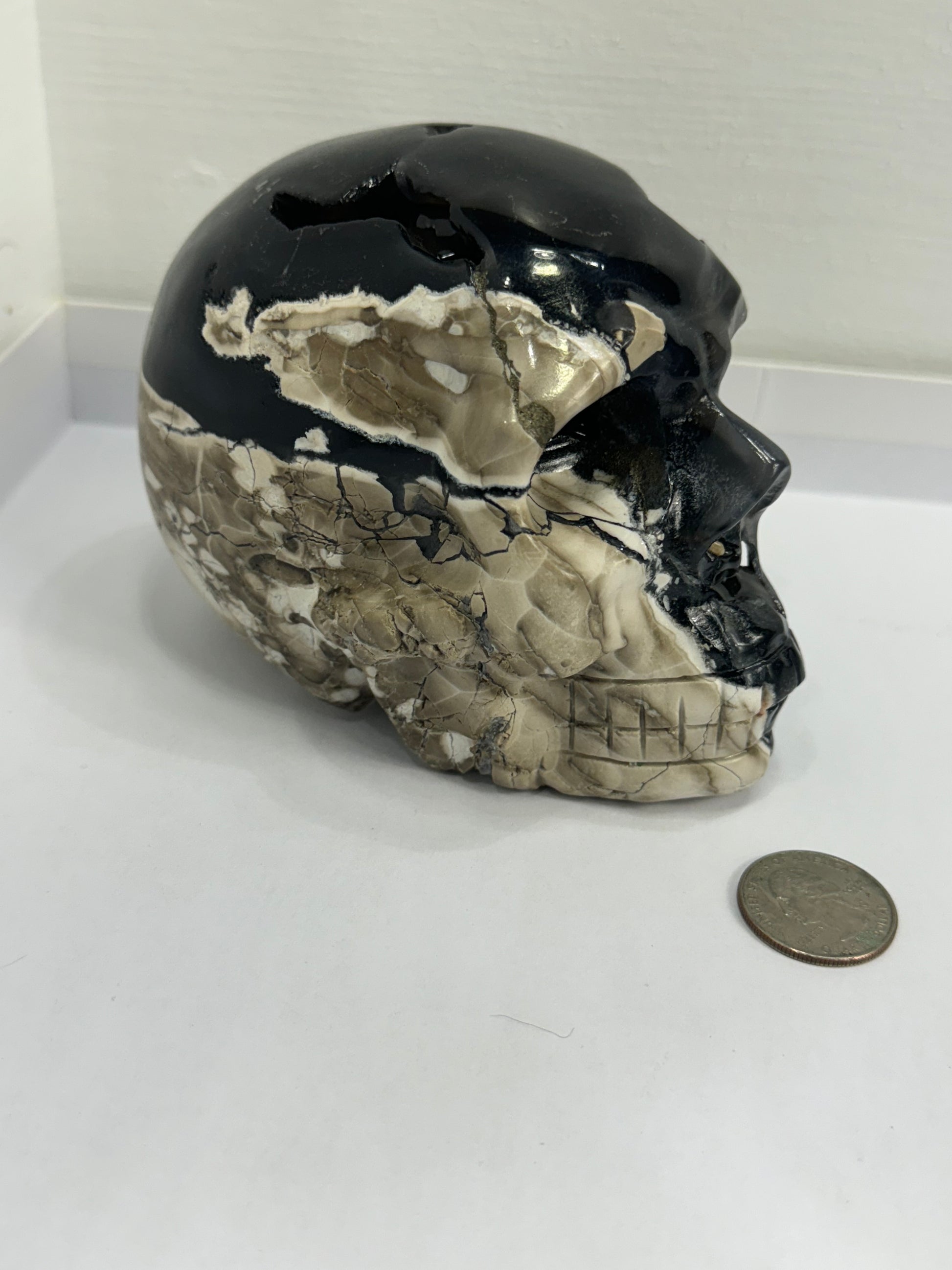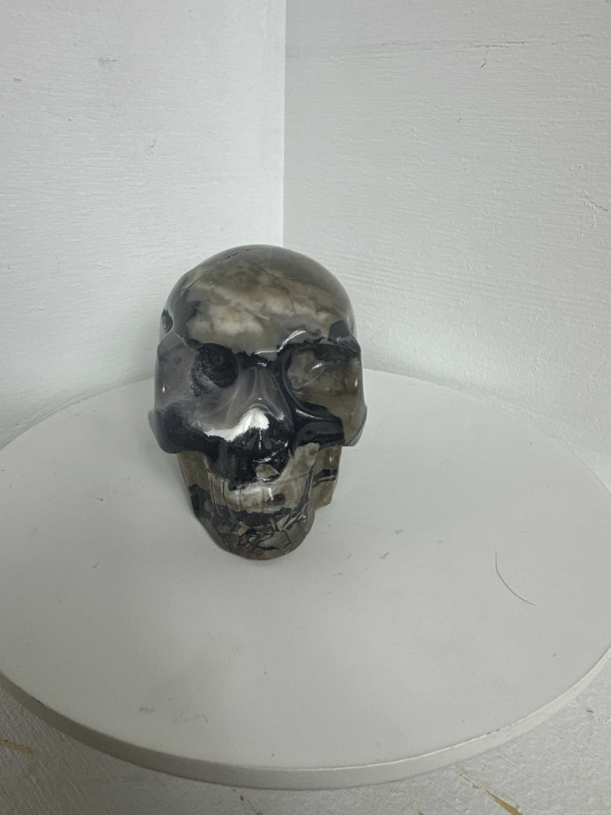 • Strength and Resilience: Volcano Agate is known for its grounding energy, helping you find strength and resilience in challenging times. The skull amplifies this grounding quality, serving as a symbol of fortitude and stability.