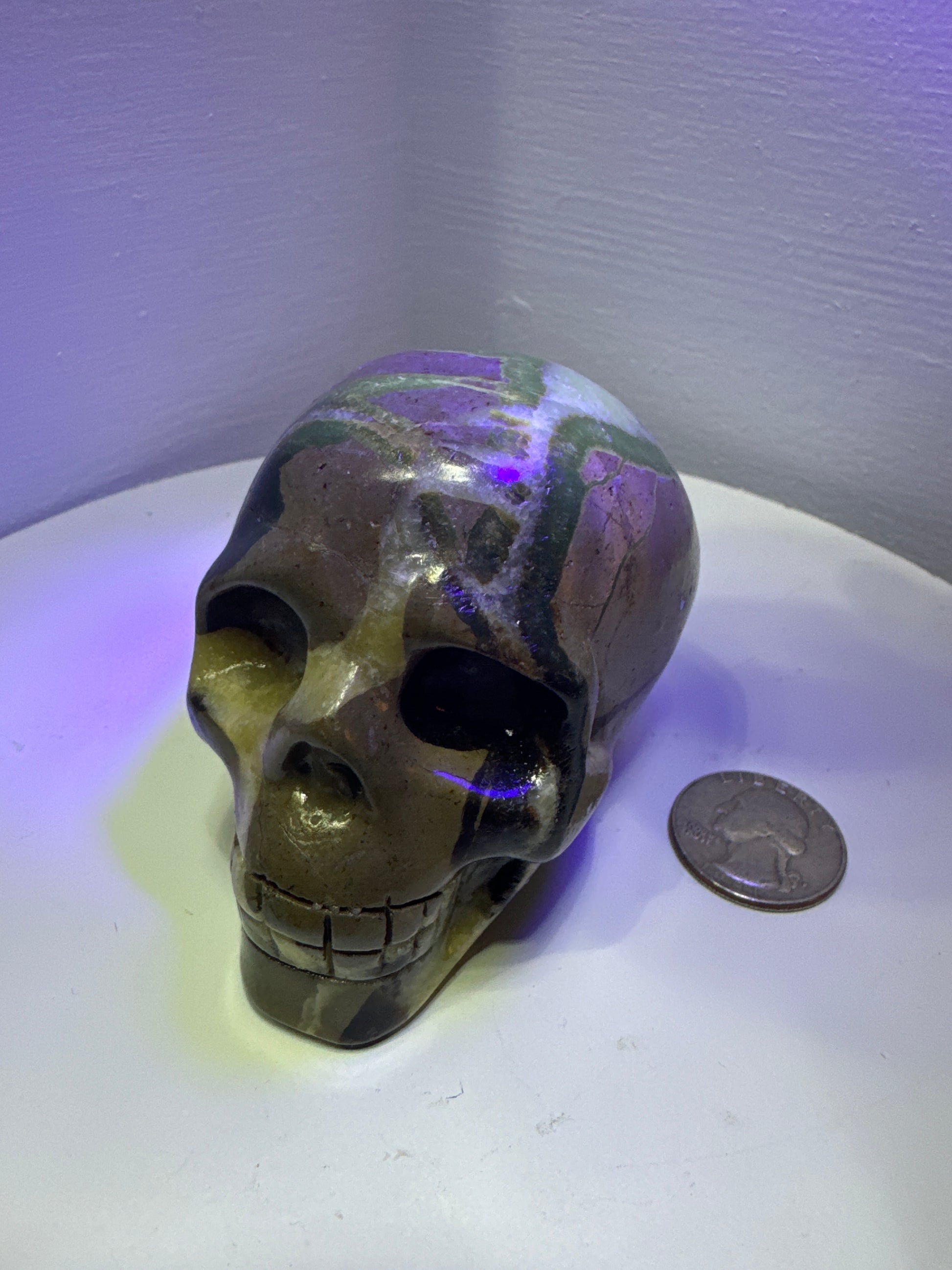 • Grounding and Protection: This stone has a strong connection to Earth’s energy, promoting emotional stability and protection from negative influences. The skull shape enhances these protective qualities, creating a safe space for inner peace and balance.