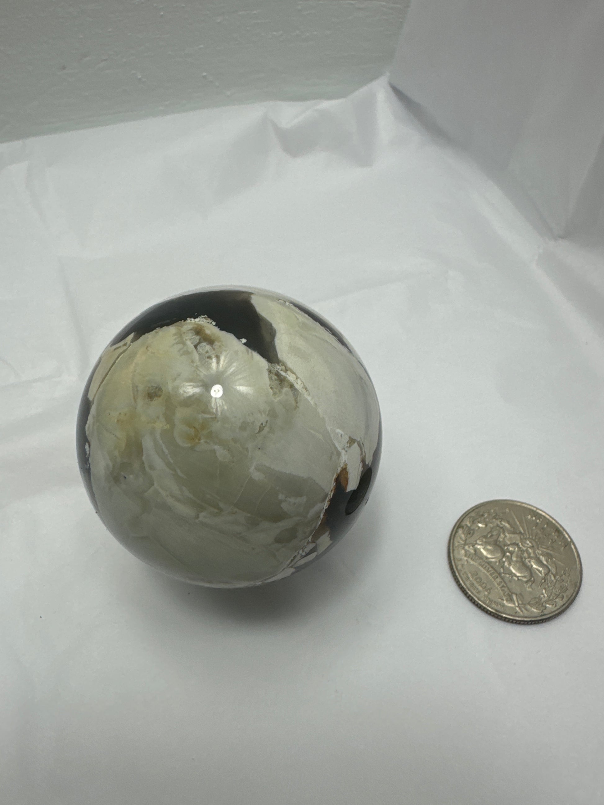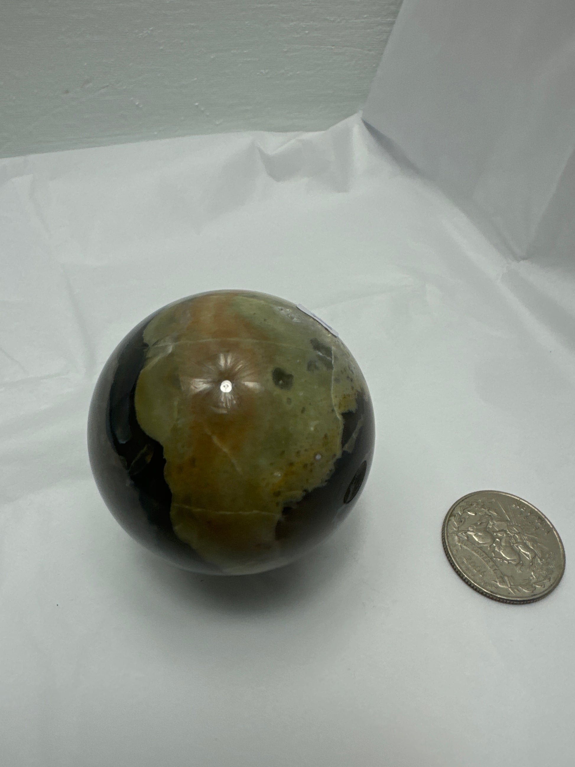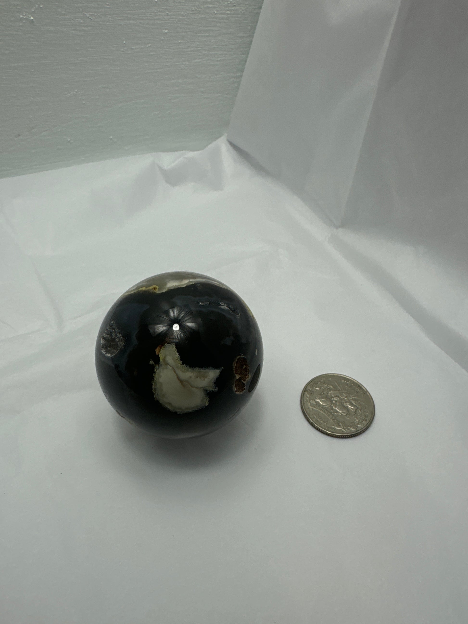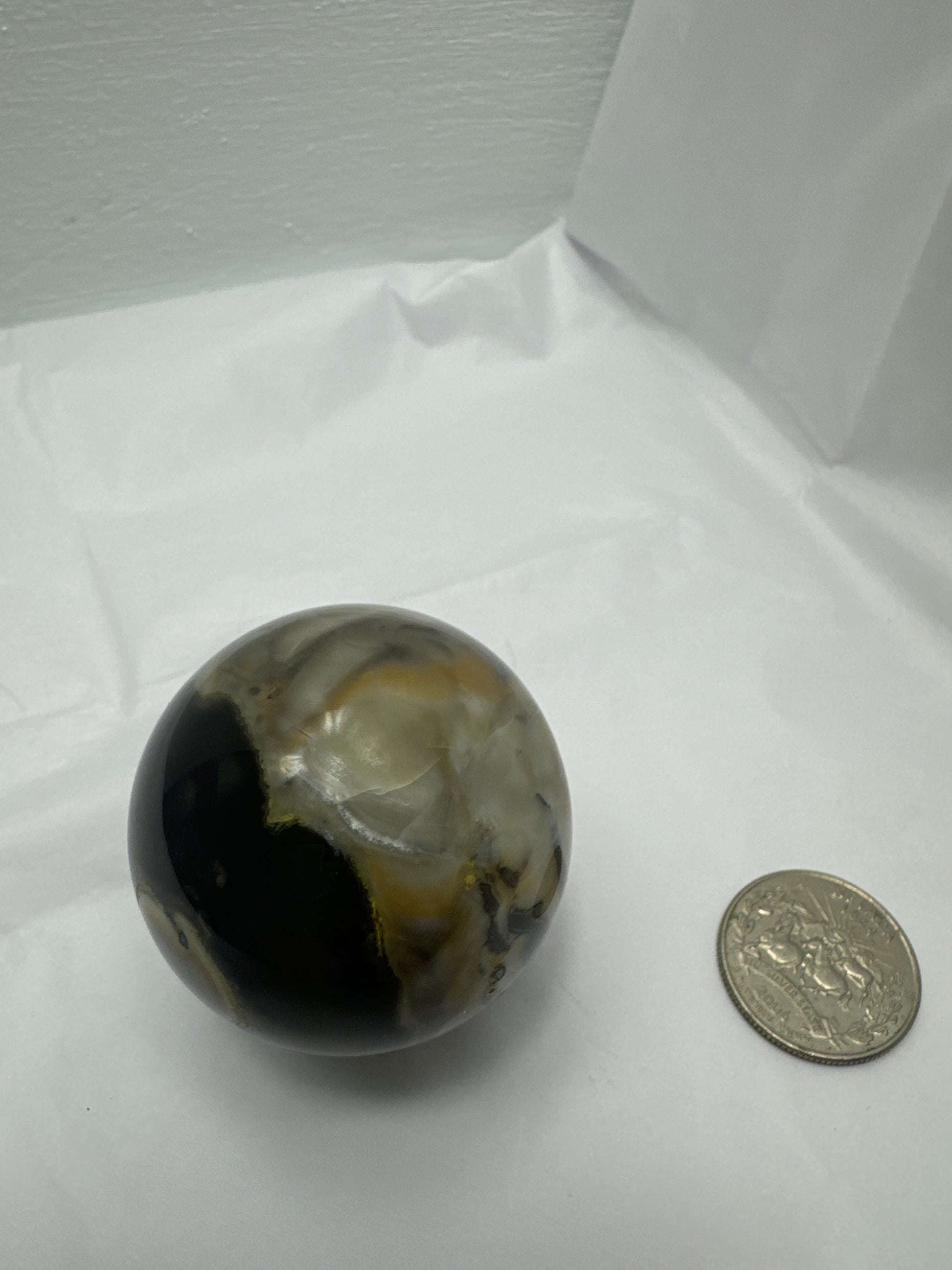 Treat yourself or a loved one to the gift of strength, transformation, and grounding with our Volcano Agate Sphere. Each sphere is carefully packaged with information about its metaphysical properties, making it a thoughtful and meaningful present for any occasion.