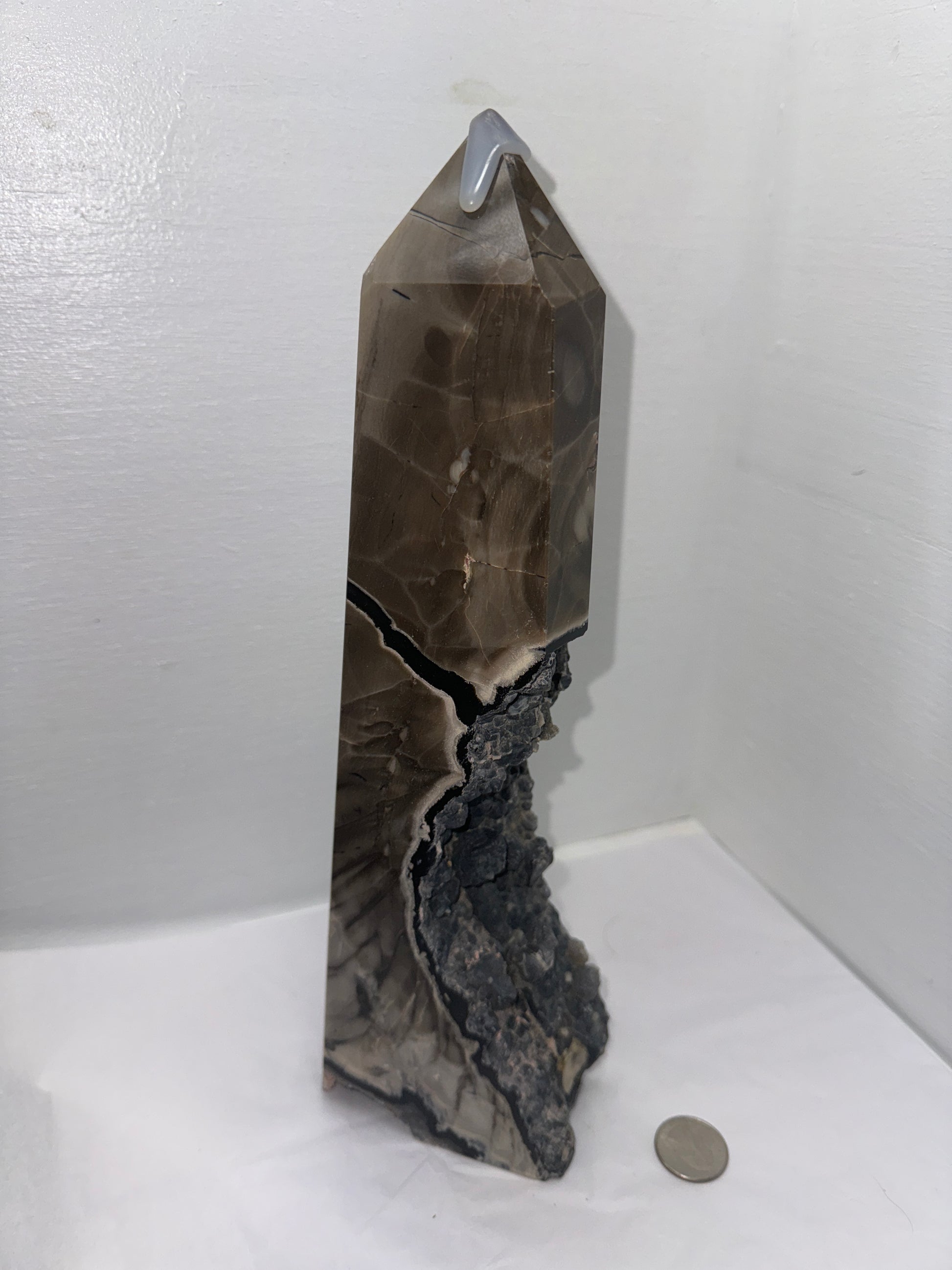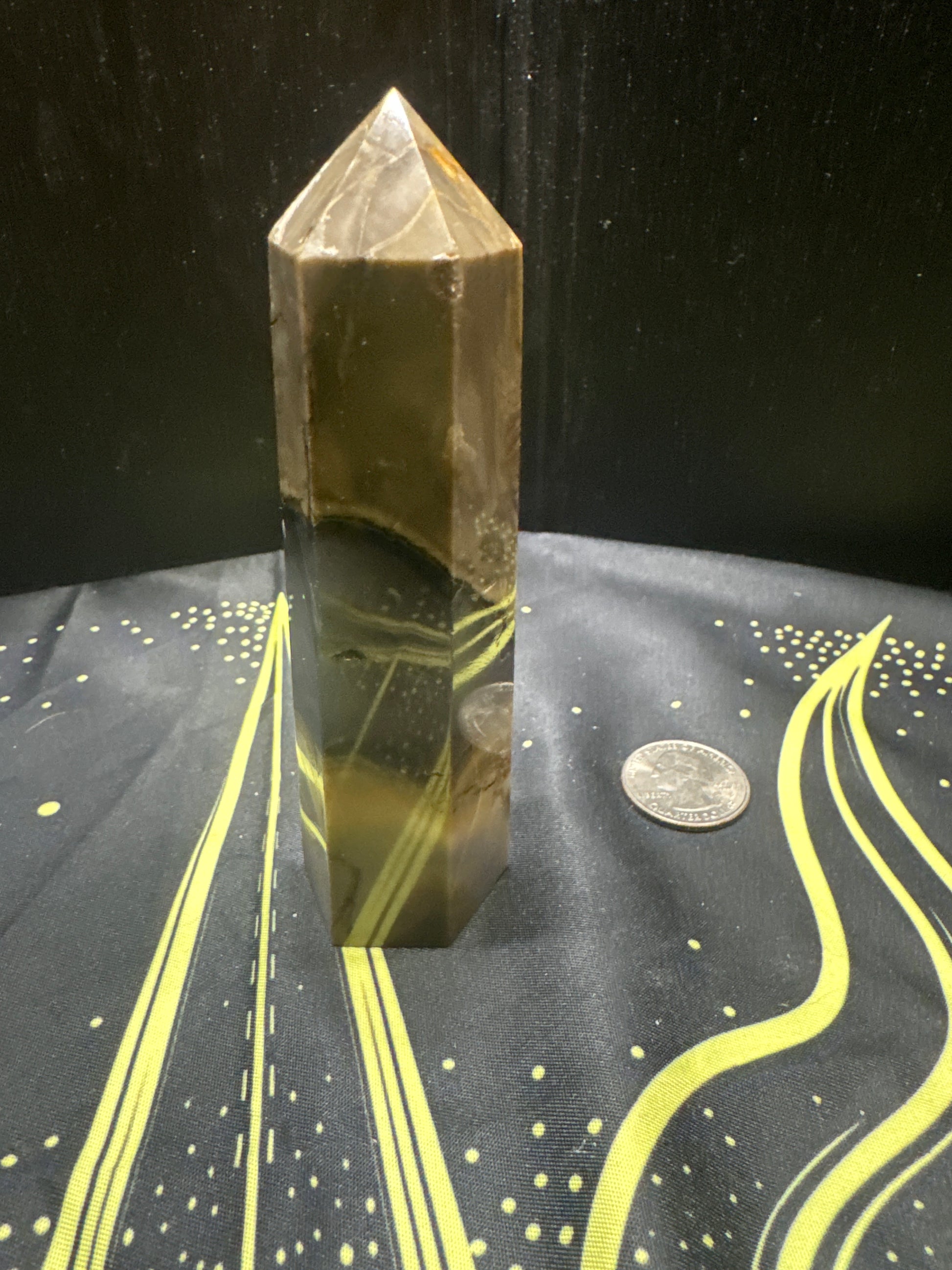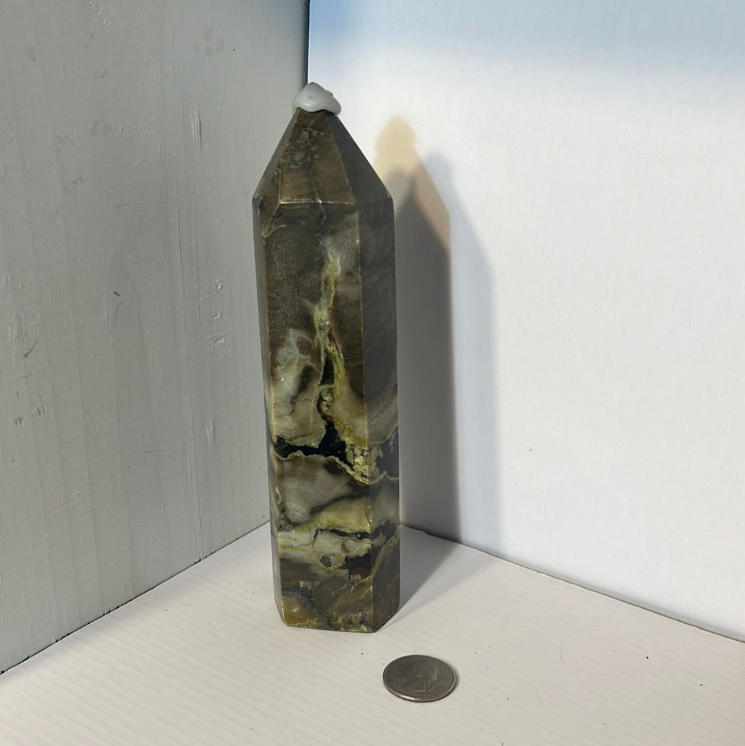 Harness the dynamic energies and tap into the transformative power of our Volcano Agate Tower. Crafted from the captivating Volcano Agate crystal, each Tower radiates a powerful blend of strength, transformation, and grounding.