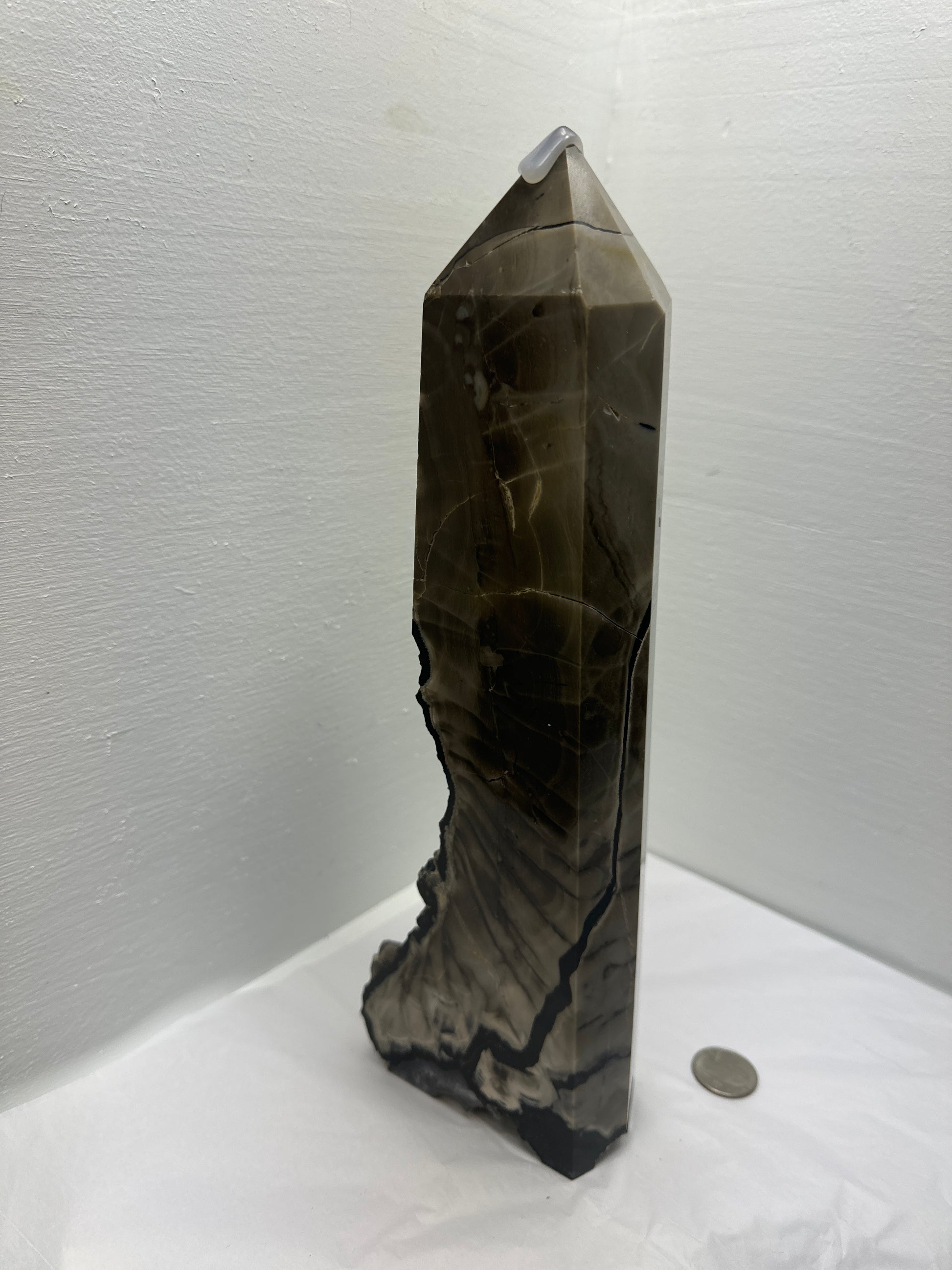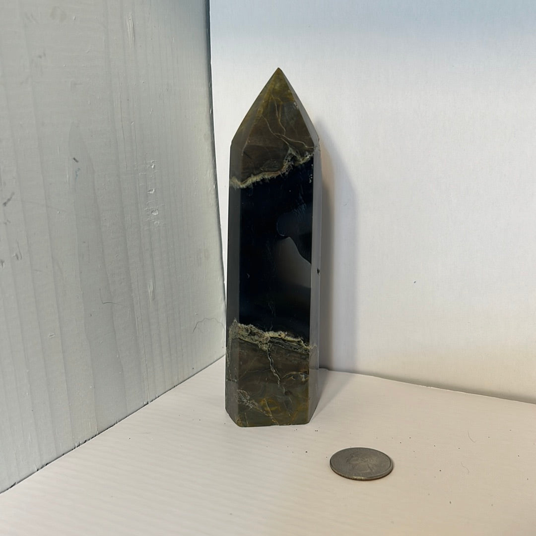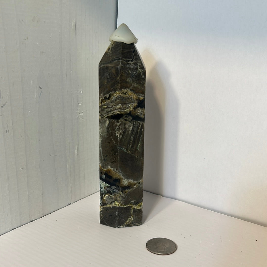 Harness the dynamic energies and tap into the transformative power of our Volcano Agate Tower. Crafted from the captivating Volcano Agate crystal, each Tower radiates a powerful blend of strength, transformation, and grounding.