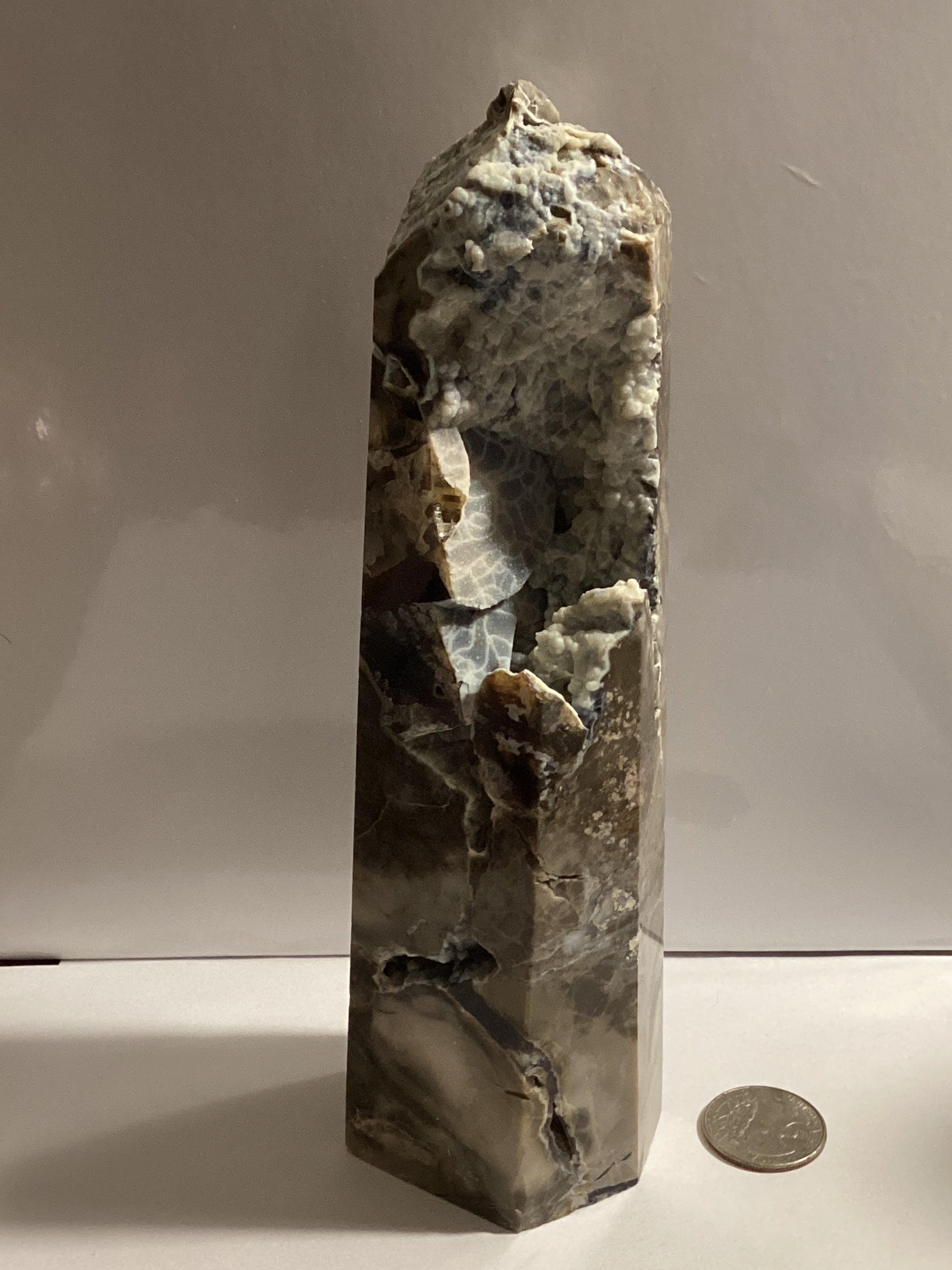 Whether youโre a seasoned crystal collector or new to the world of healing stones, our Volcano Agate Tower is a valuable addition to any collection. Its dynamic energy makes it ideal for meditation, energy work, or as a striking centerpiece for your altar or sacred space.