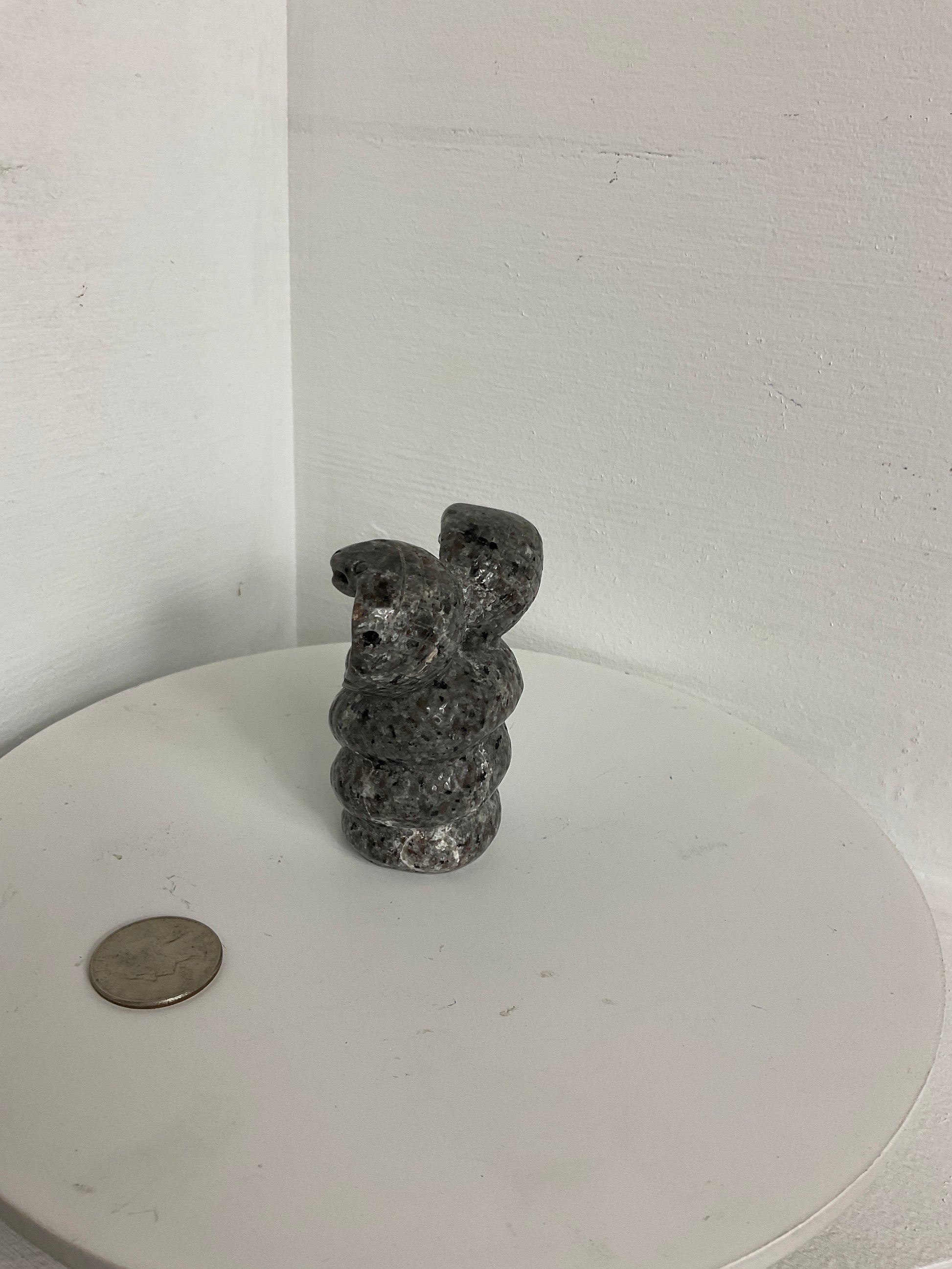Each Yooperlite Two-Headed Snake is carved from genuine Yooperlite, featuring a soft gray base with glowing spots that fluoresce under UV light. The polished finish and intricate detailing bring out the snakeโs coiled form and dual heads, creating a visually stunning and meaningful piece.